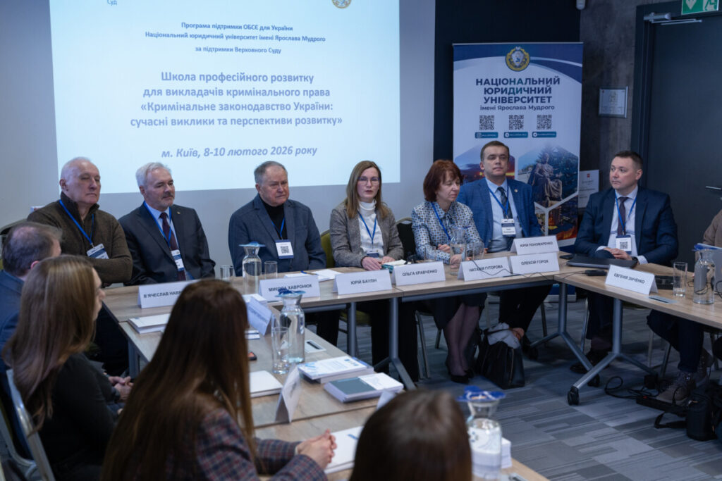 Завідувач кафедри правоохоронної діяльності, професор Ігор Медицький та завідувач кафедри політики у сфері боротьби зі злочинністю та кримінального права, професор Ігор Козич взяли участь у школі професійного розвитку для викладачів кримінального права «Кримінальне законодавство України: сучасні виклики та перспективи розвитку», що традиційно була організована OSCE projects in Ukraine (Проєкти ОБСЄ в Україні), у партнерстві з Національним юридичним університетом імені Ярослава Мудрого та співпраці з Верховним Судом (м. Київ, 7-11 лютого 2026 р.).