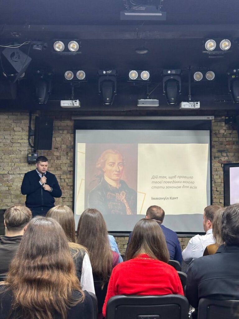 Завідувач сектору Відкритого офісу НАБУ Андрій Міщук Підняв більш філософські, але не менш важливі питання — про вибір між обов’язком і наслідками (деонтологія vs консеквенціалізм), про відповідальність, присягу та момент, з якого починається корупція. Це була розмова не лише про право, а й про цінності.
